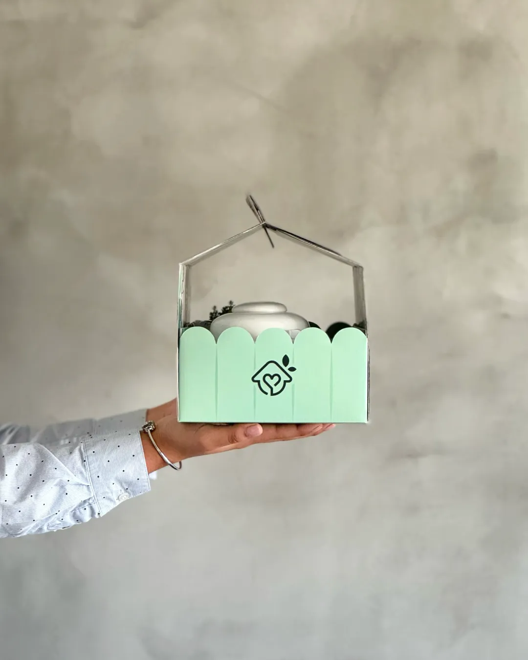 Contiene parte de las cenizas, un símbolo de renovación y amor que crecerá en su honor.