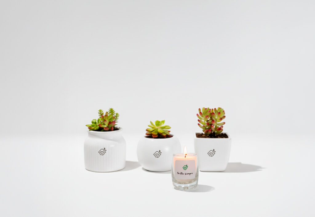 Una vela y una planta que acompañan su recuerdo.